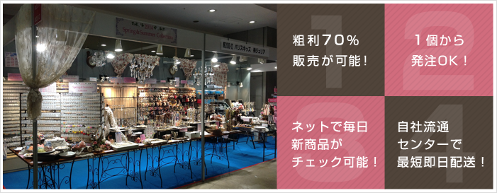 お客様の販売スタイルに合わせた商品構成を各商品1個から仕入れできます。
